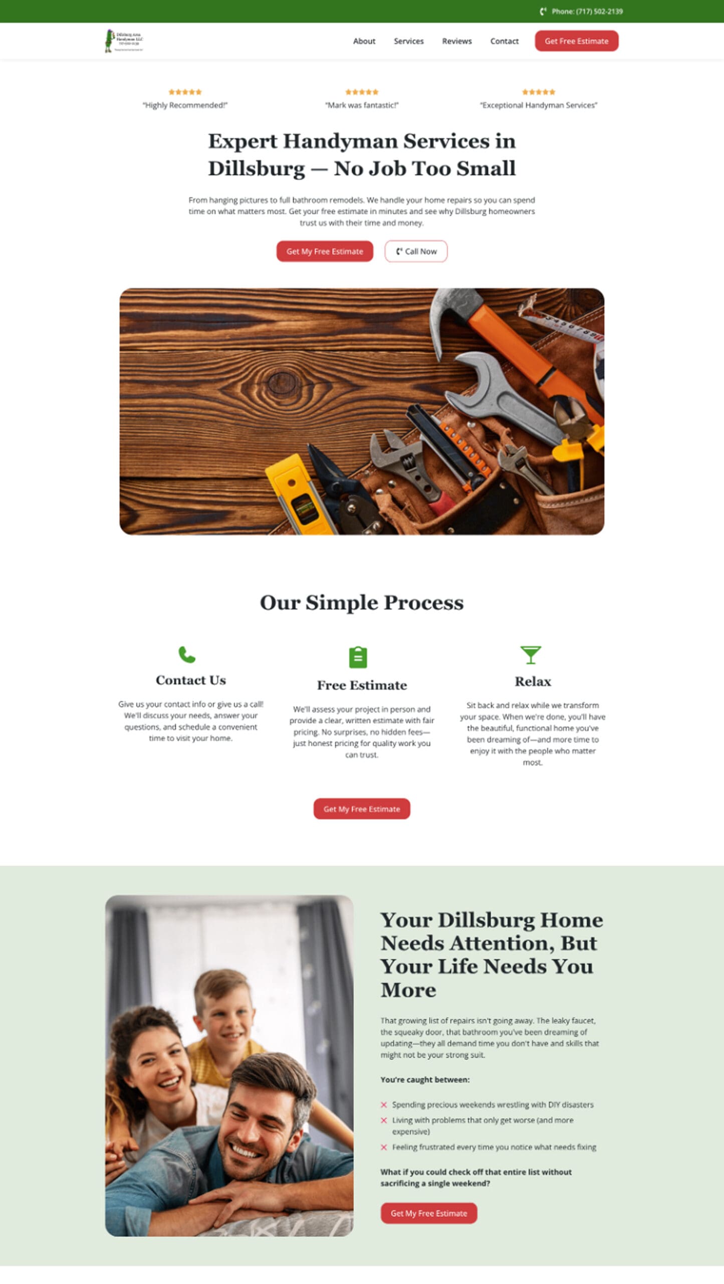 Dillsburg Area Handyman is a local handyman service in Dillsburg, Pennsylvania, providing home repair, maintenance, and improvement services for residential properties. No job is too small, from minor repairs and installations to larger home improvement projects. When they approached Noble Digital, they had almost no online presence other than an old website and social media profile, making it difficult for homeowners to discover their services or understand their capabilities in a market dominated by larger contractors.