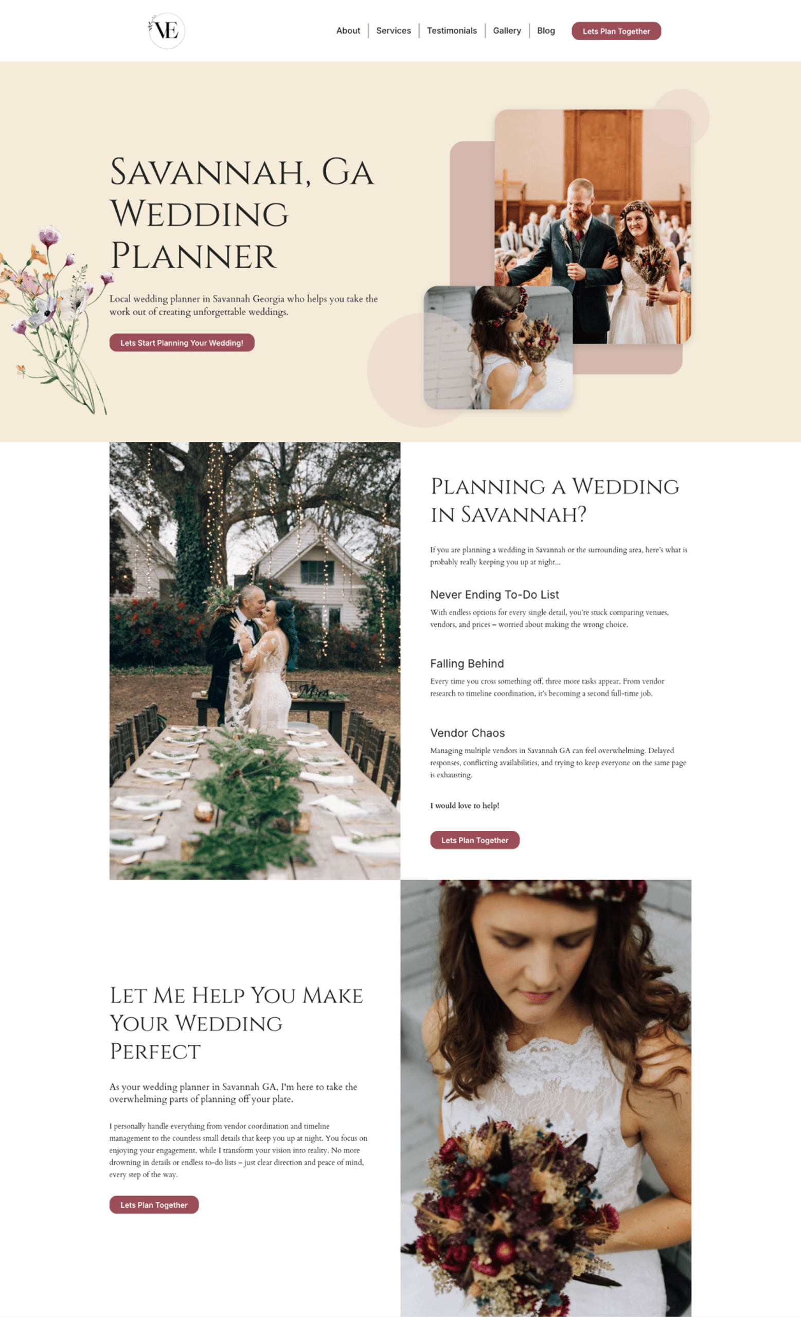 Noble Digital built an elegant, visually stunning website featuring their event services, portfolio of past celebrations, and planning process. The refined design emphasizes the quality and attention to detail that defines their work, with beautiful imagery and intuitive navigation that guides couples and event hosts through their offerings. Contact forms and consultation booking options make it easy for potential clients to begin the planning process. Strategic SEO optimization targeted event planning and wedding coordination searches in their market.