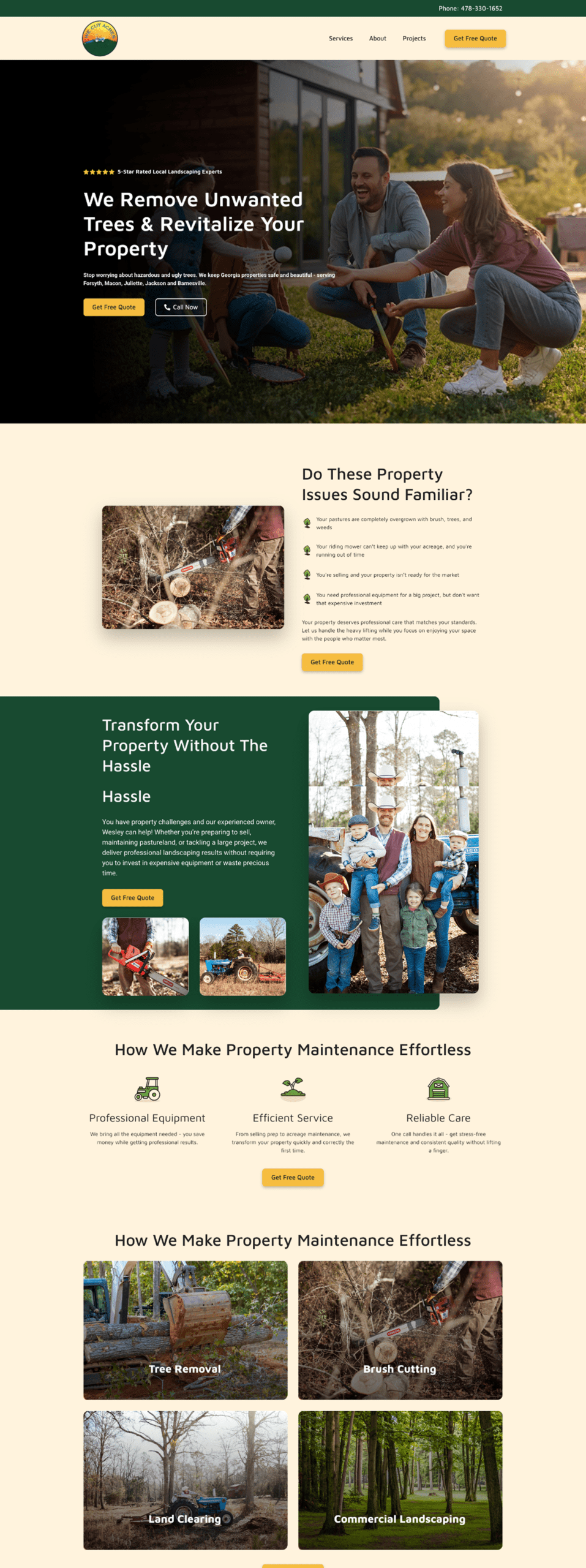 We Cut Acres is a professional landscaping and lawn care company serving Middle Georgia in the Macon area, specializing in large property maintenance, commercial mowing, and residential lawn services. When they approached Noble Digital, they had minimal online presence, making it difficult for property owners with acreage to find their specialized services in local search results.
